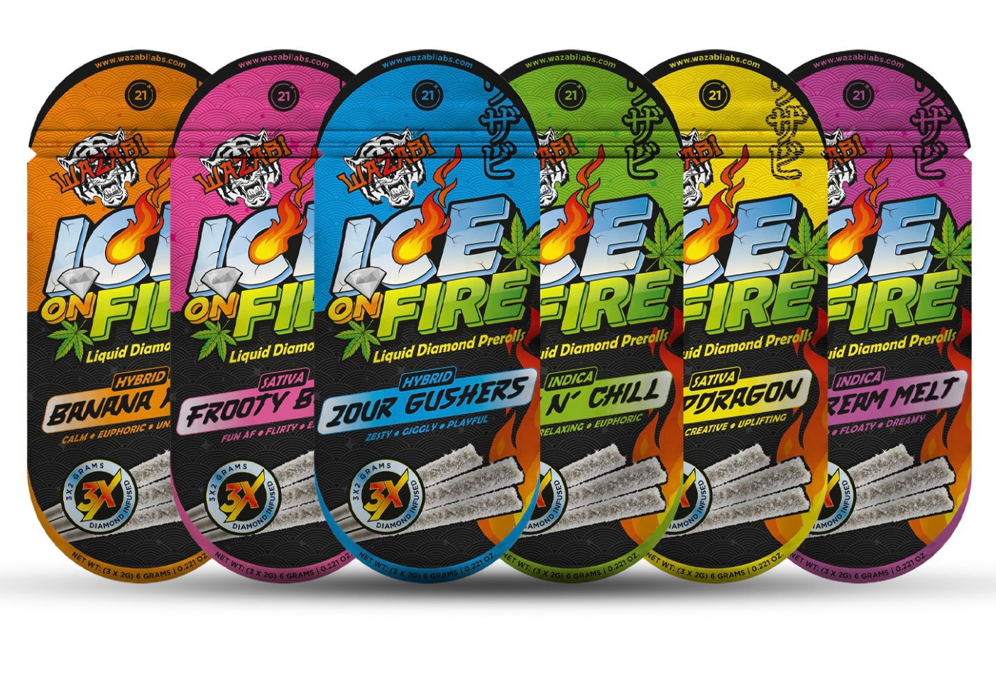 WAZABI EXOTICS 2G ICE ON FIRE LIQUID DIAMOND PREROLLS 3X5/PK